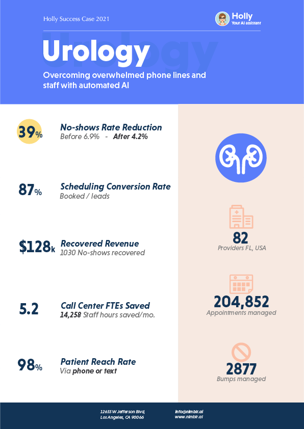 Nimblr’s conversational self-scheduling feature creates a frictionless way for patients to contact our officer... it has reduced my no-show rate by almost 72%.